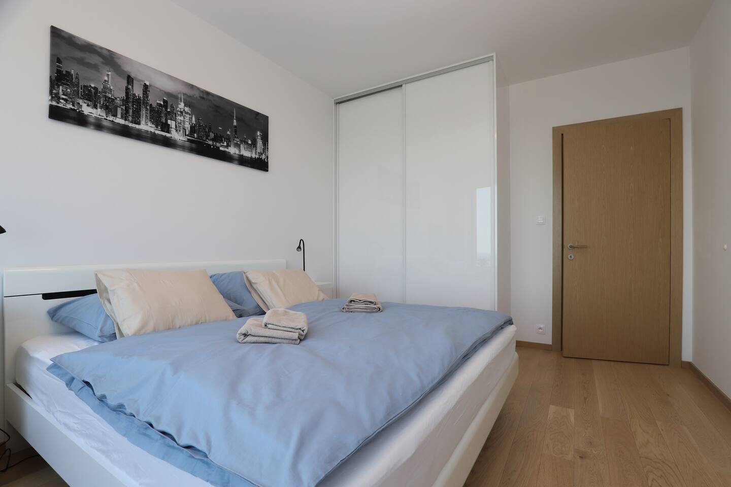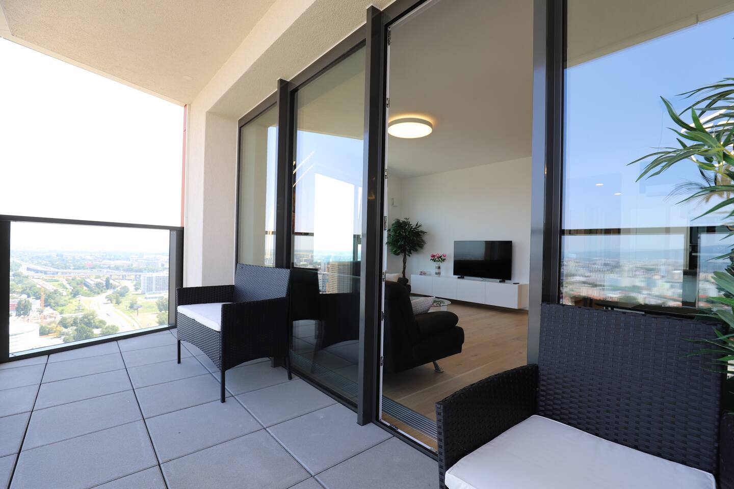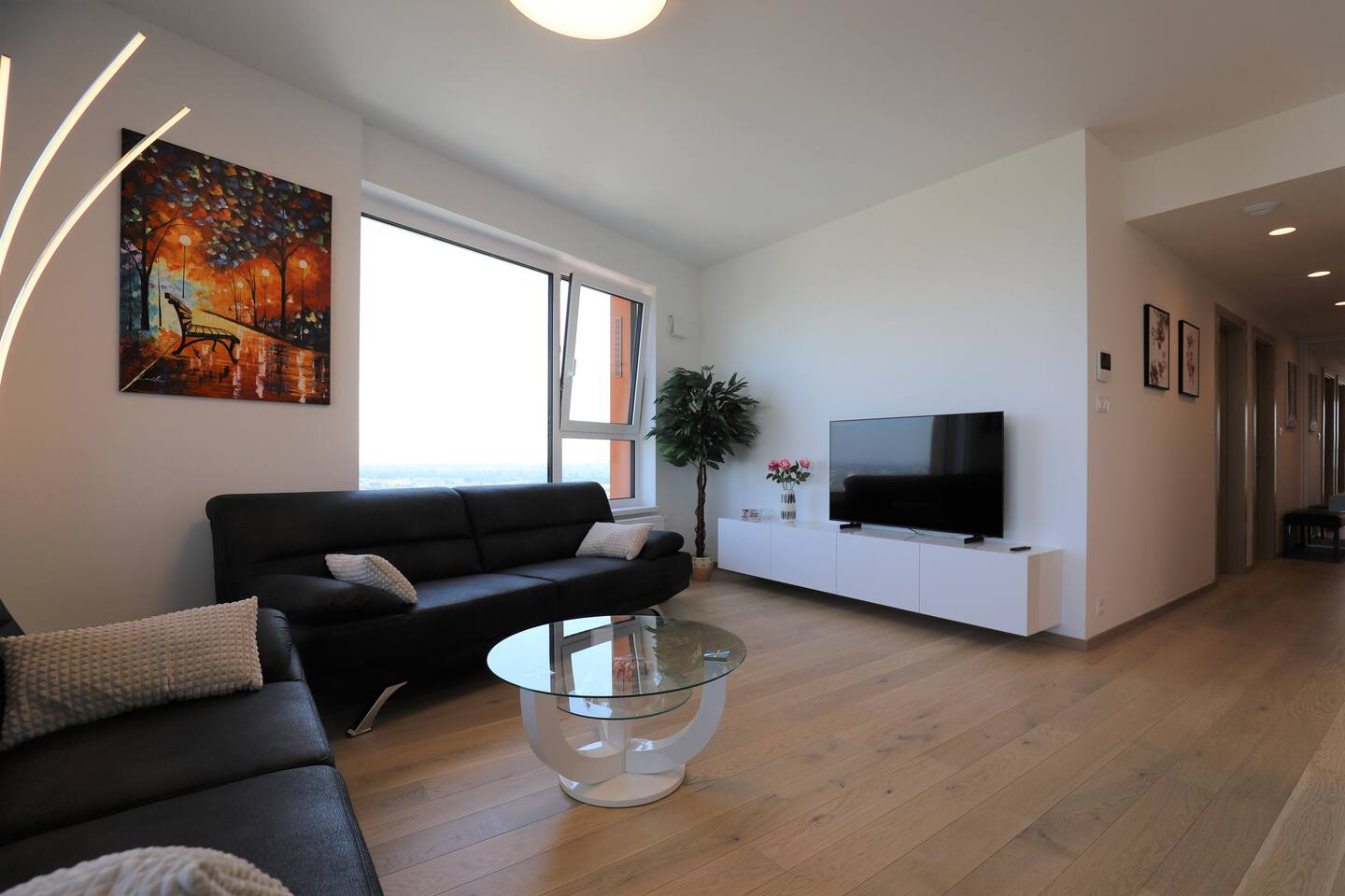 New 3-room spacious apartment with a panoramic view of the city from the 30th floor. There are two bedrooms with double beds and a fully equipped kitchen with a dining table where you can also work while looking at the city. Large Smart TV with Netflix, YouTube ... Fast free wifi. The apartment is located between the Eurovea shopping centers, on the banks of the Danube, and the Niva, where the main bus station is. You can reach everywhere within 10 minutes on foot. The city's historical center is a 10-15 minute walk along the Danube embankment.