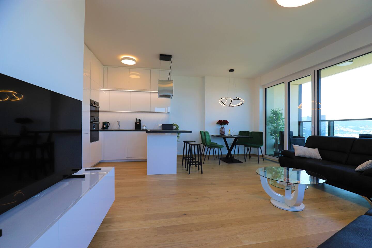 - 24/7 self-service check-in/check-out - Free parking in the parking garage - panoramic view from a height of 90 m above the ground (30th floor) - Animals are allowed by prior agreement - 80 m2 apartment with 2 bedrooms - Fully equipped kitchen set - free coffee and tea (espresso Tchibo) - Smart TV with YouTube and Netflix - Unlimited Internet