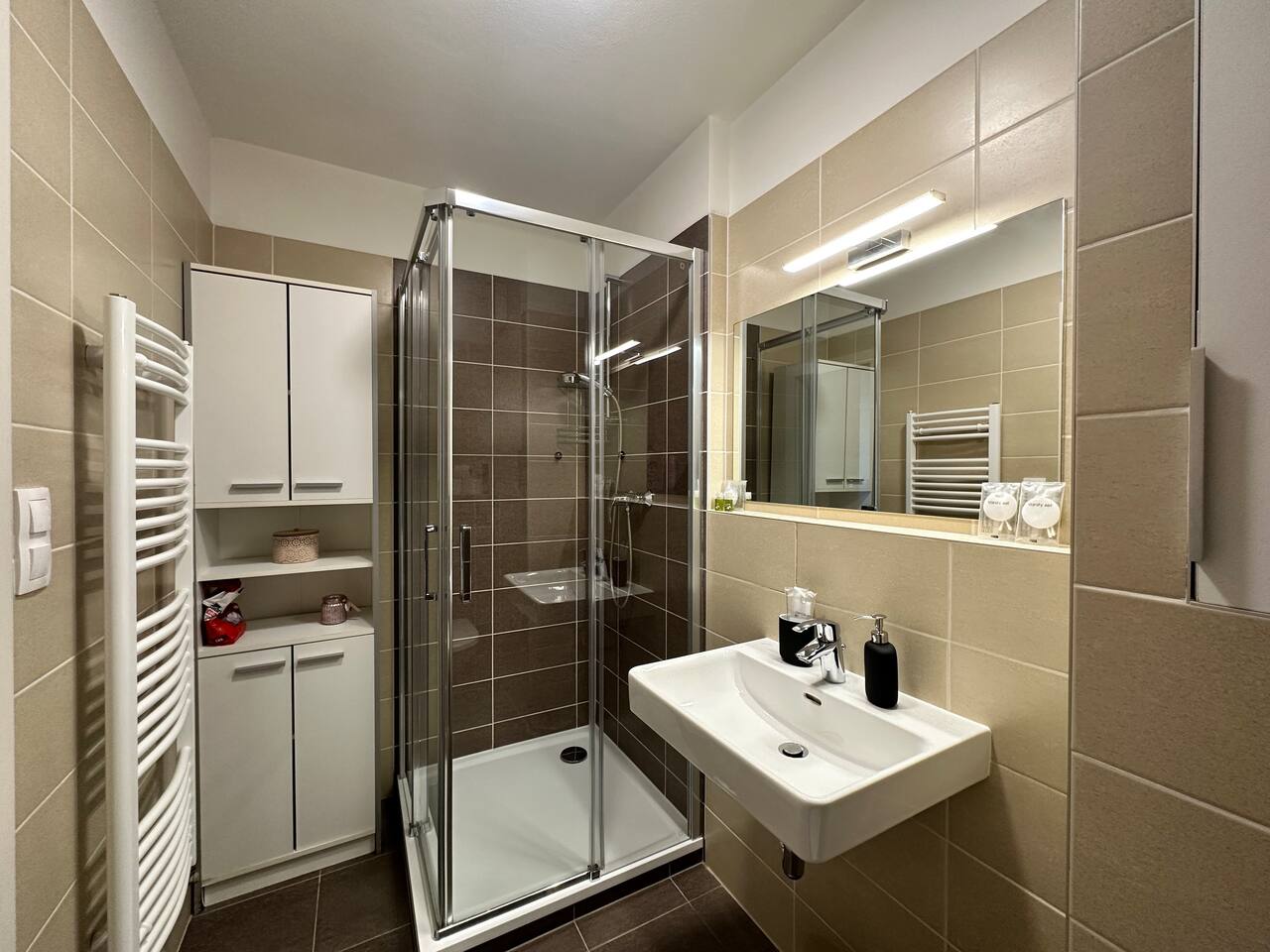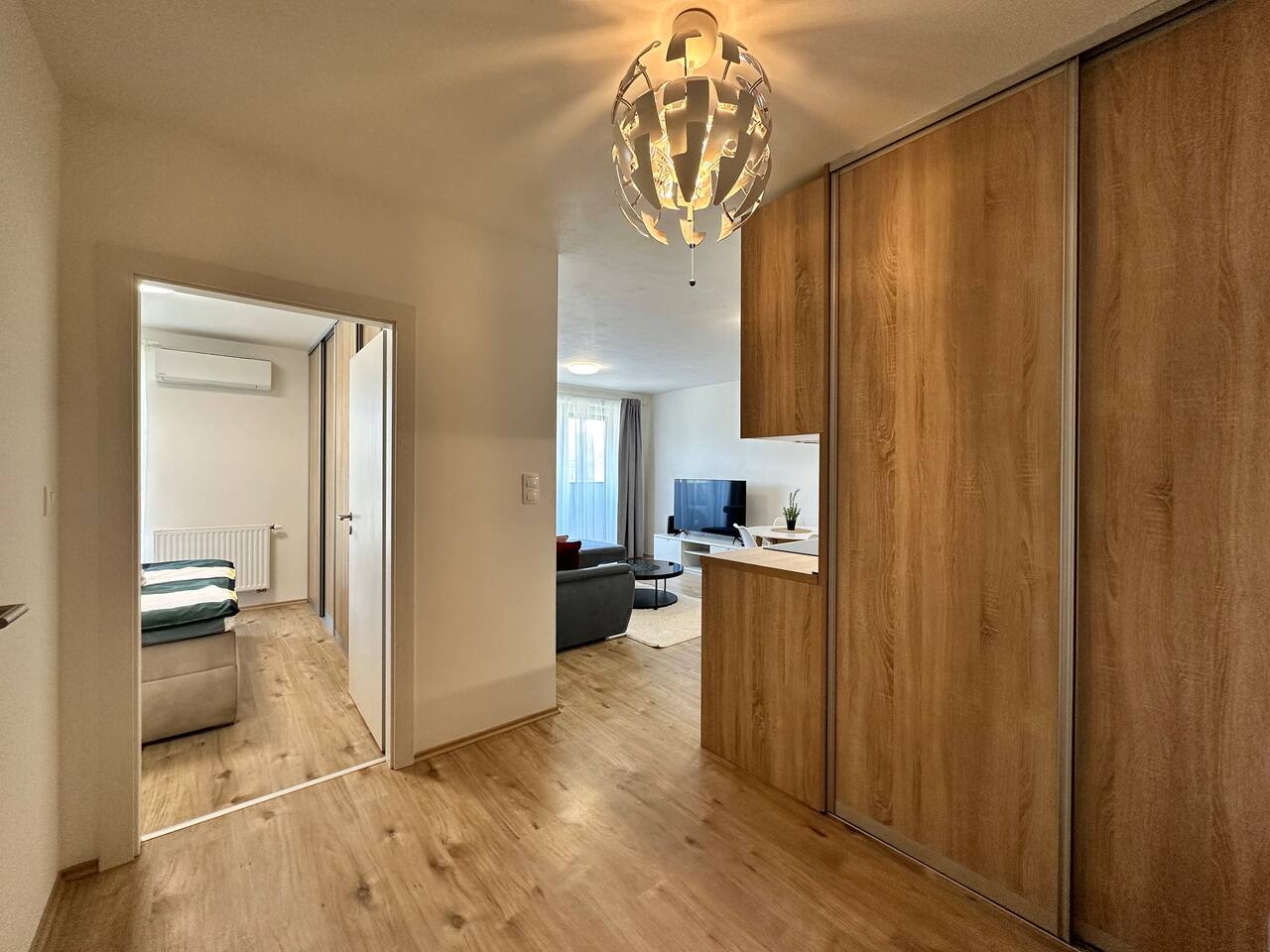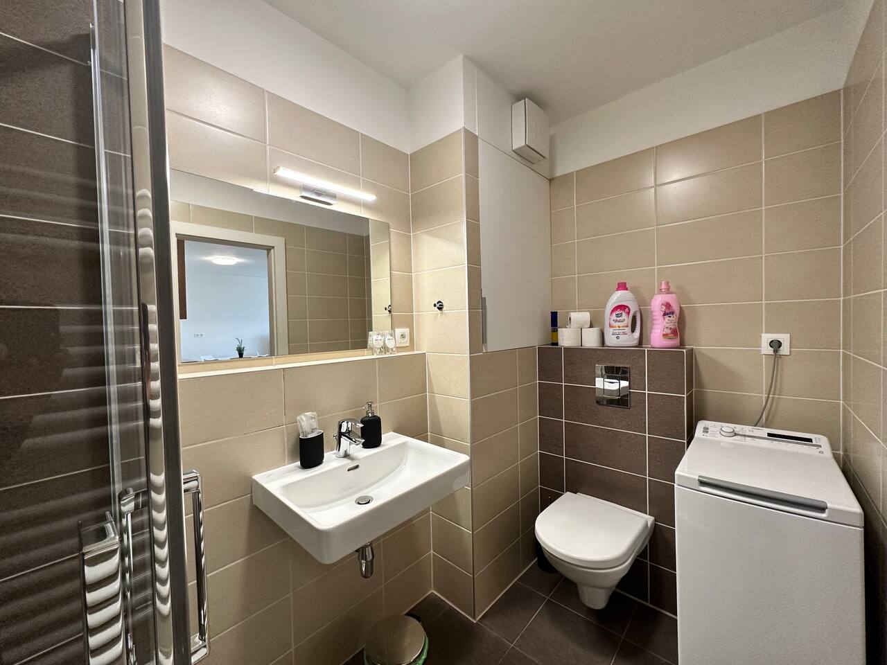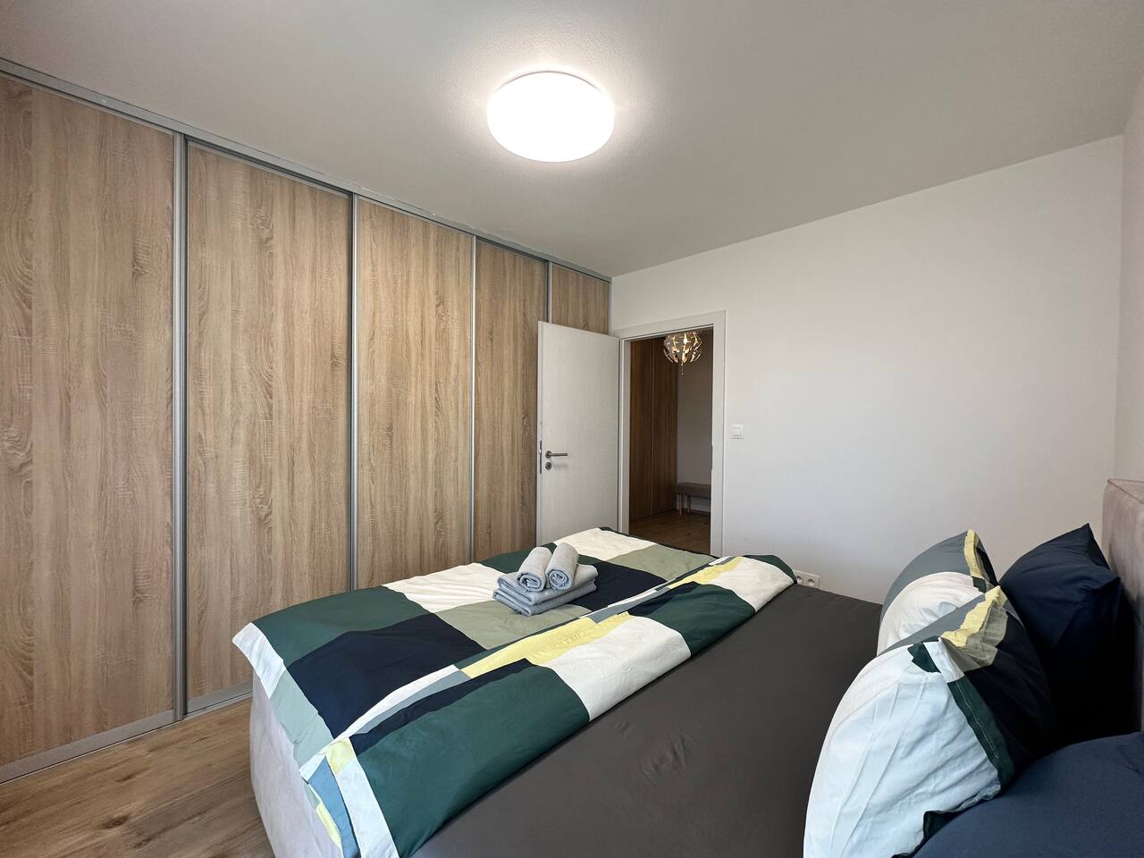 Novozariadený apartmán v Petržalke na konci Starého mosta. Iba pár minút chôdze od centra mesta a parku Sad Janka Krála. V priestrannej chodbe je vstavaný šatnik a prístup do kúpelne s wc kde je spchový kút a automatická práčka. V spálni je veľká maželská posteľ a obrovská vstavaná skriňa, kde si môžete vyložiť všetky vaše veci. Z chodby sa ďalej dostanete do obývacej izby spojenej s kuchyňou a jedálenským kútom. V obývacej izbe je rozťahovací gauč a veľká smart TV, kde sa môžete prihlásiť do svojho Netflixu alebo YouTubu. Kuchyňa je plnenzariadená s umývačkou riadu, mikrovlnkou rúrou, pressostrojom Tchibo a rýchlovarnou konvicou.