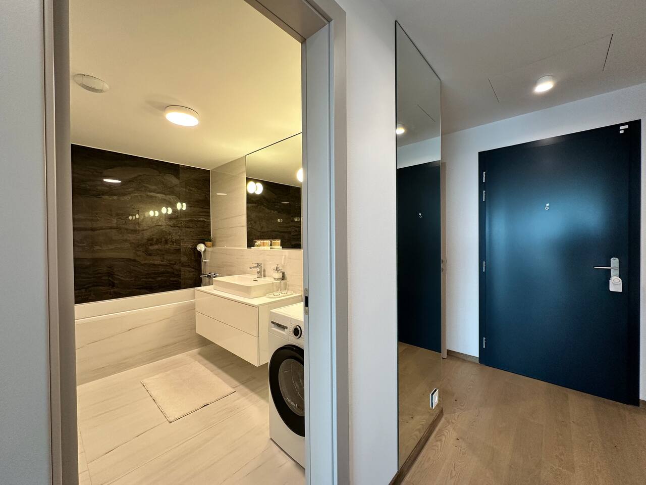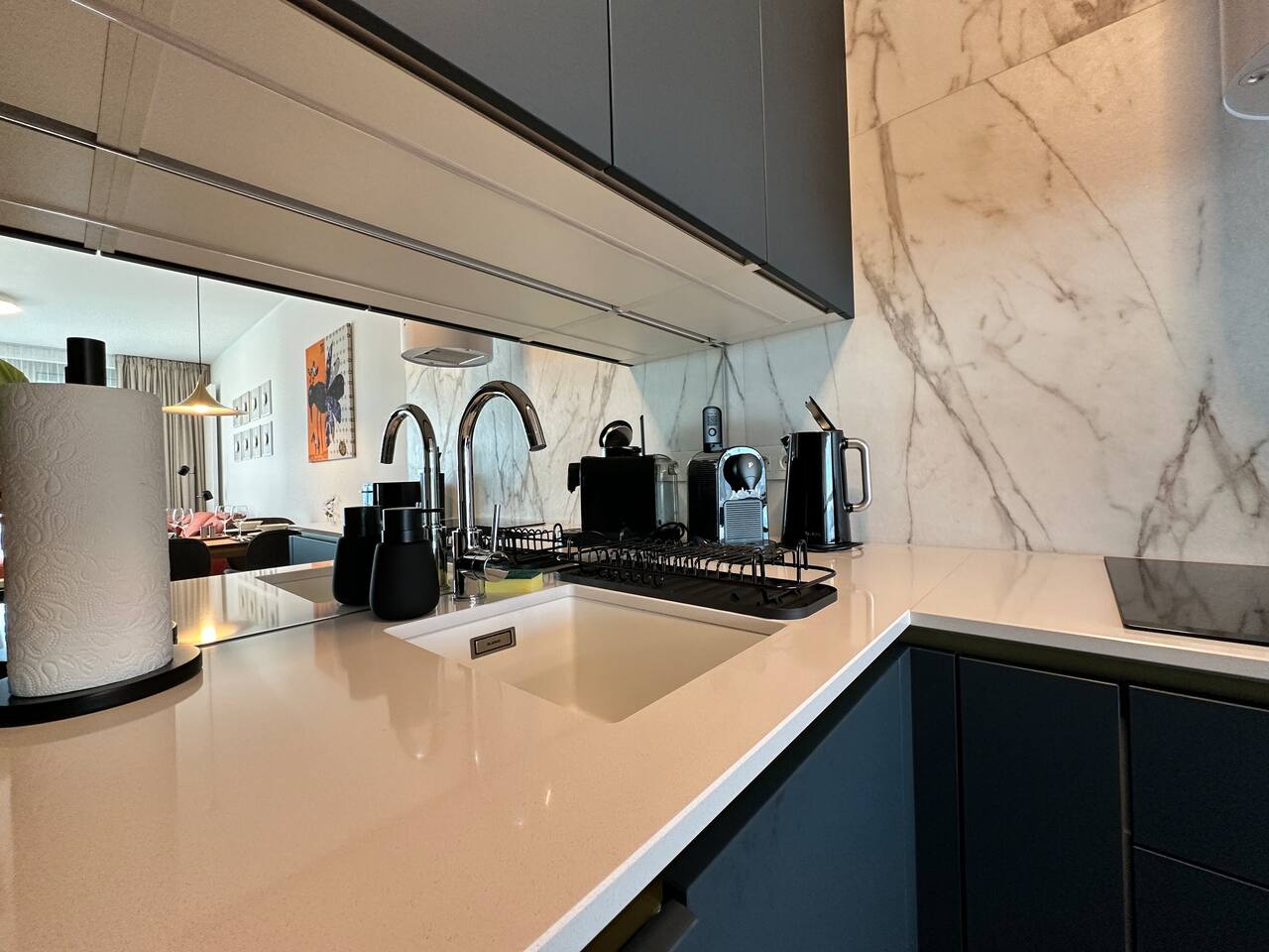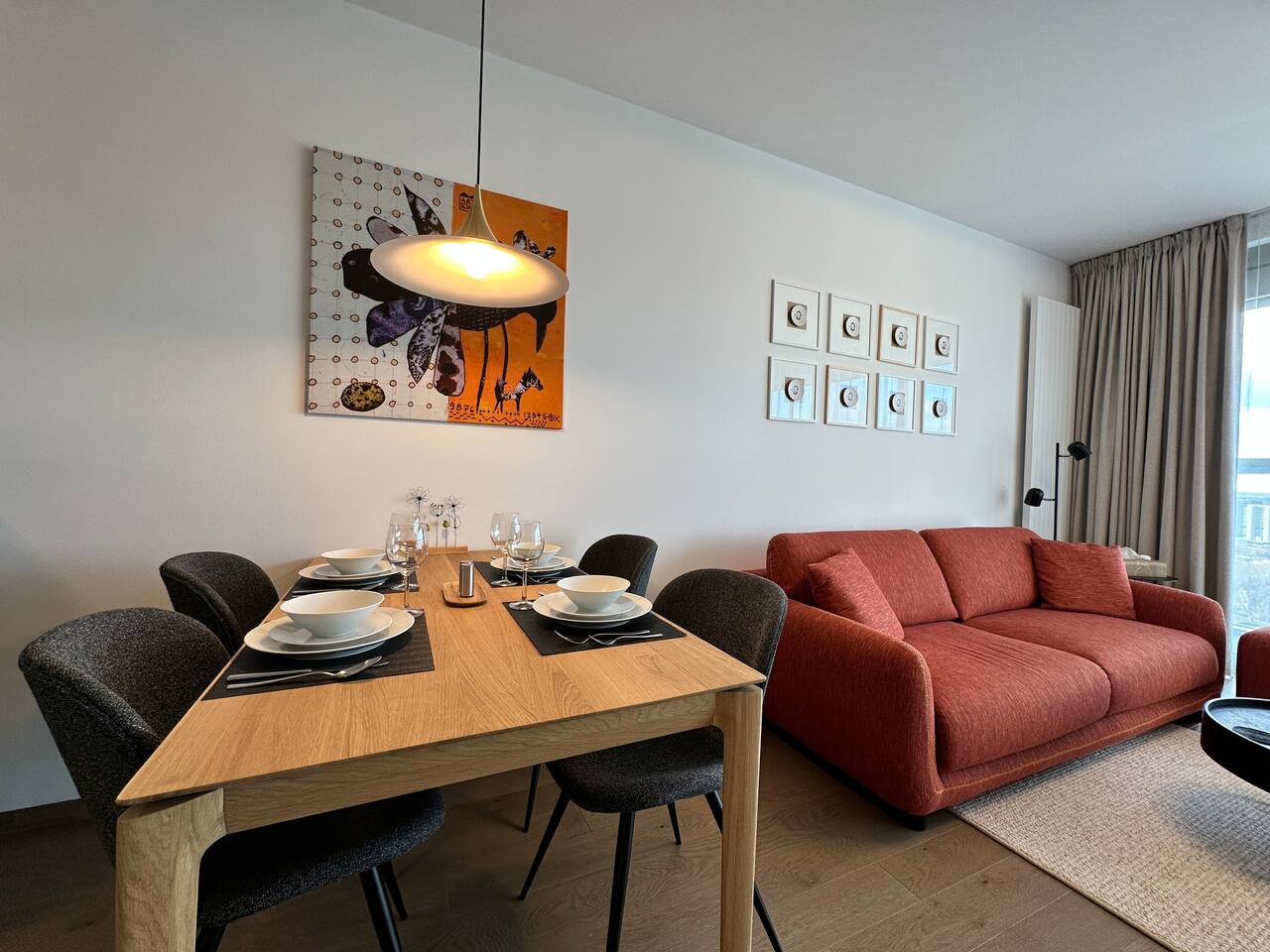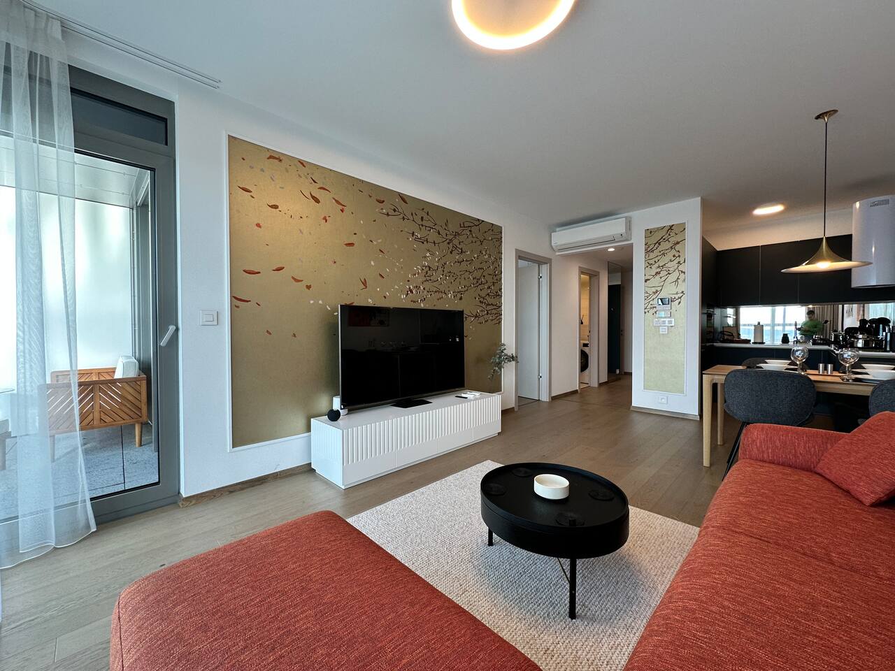 Wake up above Bratislava in a stylish 1-bedroom apartment on the 24th floor of Eurovea Tower with a spacious balcony and a panorama of the city center. - Fully equipped kitchen (presso, toaster, microwave, induction, oven, fridge with freezer, dishwasher). - Free fast Wi-Fi internet. - Large smart TV (Netflix, YouTube, HBO, Prime). - Sofa bed, large double bed. - Bathroom with bathtub, towels, and toiletries. - Washing machine, iron, dryer. - Air conditioning. - Parking included.
