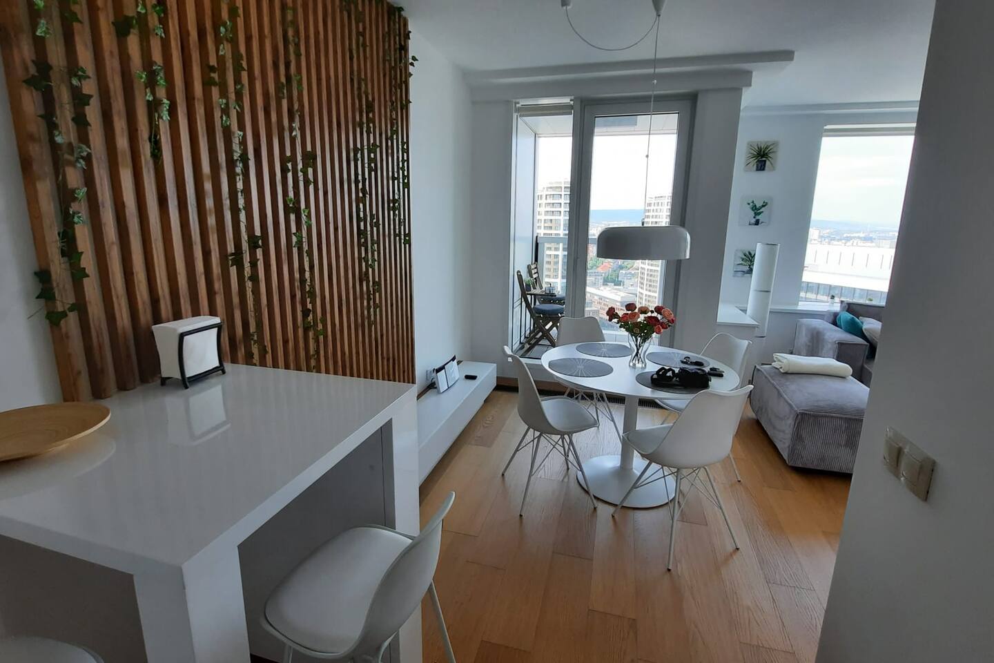 - panoramic view from the 27th floor - parking in the parking garage - 24/7 reception (check-in/checkout) - fast wifi 100Mbps+ - smart TV (Netflix, YouTube, .... cable stations) - kitchen corner - free coffee and tea - 50 m2 fully equipped apartment