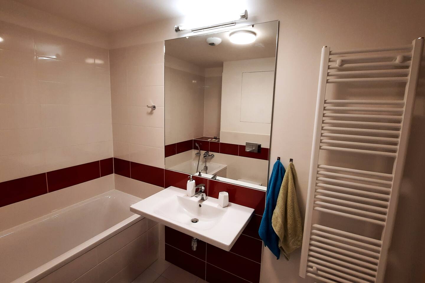 One-bedroom 50m2 apartment with a queen-sized bed, living room, and kitchen with access to a balcony on the 27. floor. One bathroom with a bathtub and toilet. This apartment is suitable for a family with kids or four adult persons. You can find a huge smart TV with cable television, free wifi, and a comfortable foldable sofa in the living room. The kitchen is fully set, expresso coffee machine and coffee is not missing, set of tea, toaster,.... The bedroom is ready just to lay down and dream. Blankets, sheets, towels, shower gels,... everything is ready for you.