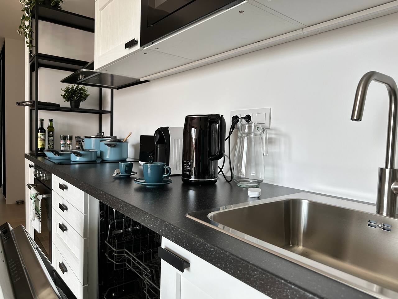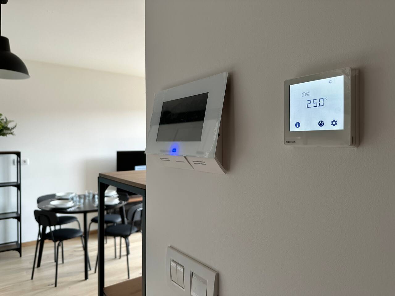 - 2 izby obývačka a spálňa - obývačka spojená s kuchyňou a jedálenskou časťou - v obývačke je ľahkorozťahovací gauč pre 2 osoby, smart TV a vstup na balkón - kuchyňa je plne zariadená, toastovač, espresso stroj Tchibo, rýchlovarná konvica, mikrovlnná rúra, rúra na pečenie, umývačka riadu, indukčná doska na varenie, taniere, poháre, hrnce - v chodbe je vstavaná skriňa na odloženie kabátov - v spálni je komfortná manželská postel 180x200, veľká skriňa na oblečenie, okno s externými žalúziami a zatemnovacími závesmi pre úplnú tmu - v kúpelni je priestranný sprchový kút, umývadlo so zrkadlom, automatická práčka a wc. - celý byt využíva stropné chladenie a externé, polohovateľné žalúzie - všetci hostia dostanú štandardne sadu uterákov, jednorázové hygienické potreby a kompletne nové postelné prádlo - káva a čaj a tak isto aj parkovanie sú v cene ubytovania